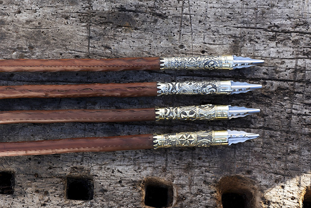 La virole est la partie métallique qui relie la pointe au bâton. Elle peut être en alpaca , laiton ou argent. La virole présente d’élégantes et fines gravures comme des rosaces et motifs basques, fruits de la créativité de l’artisan.